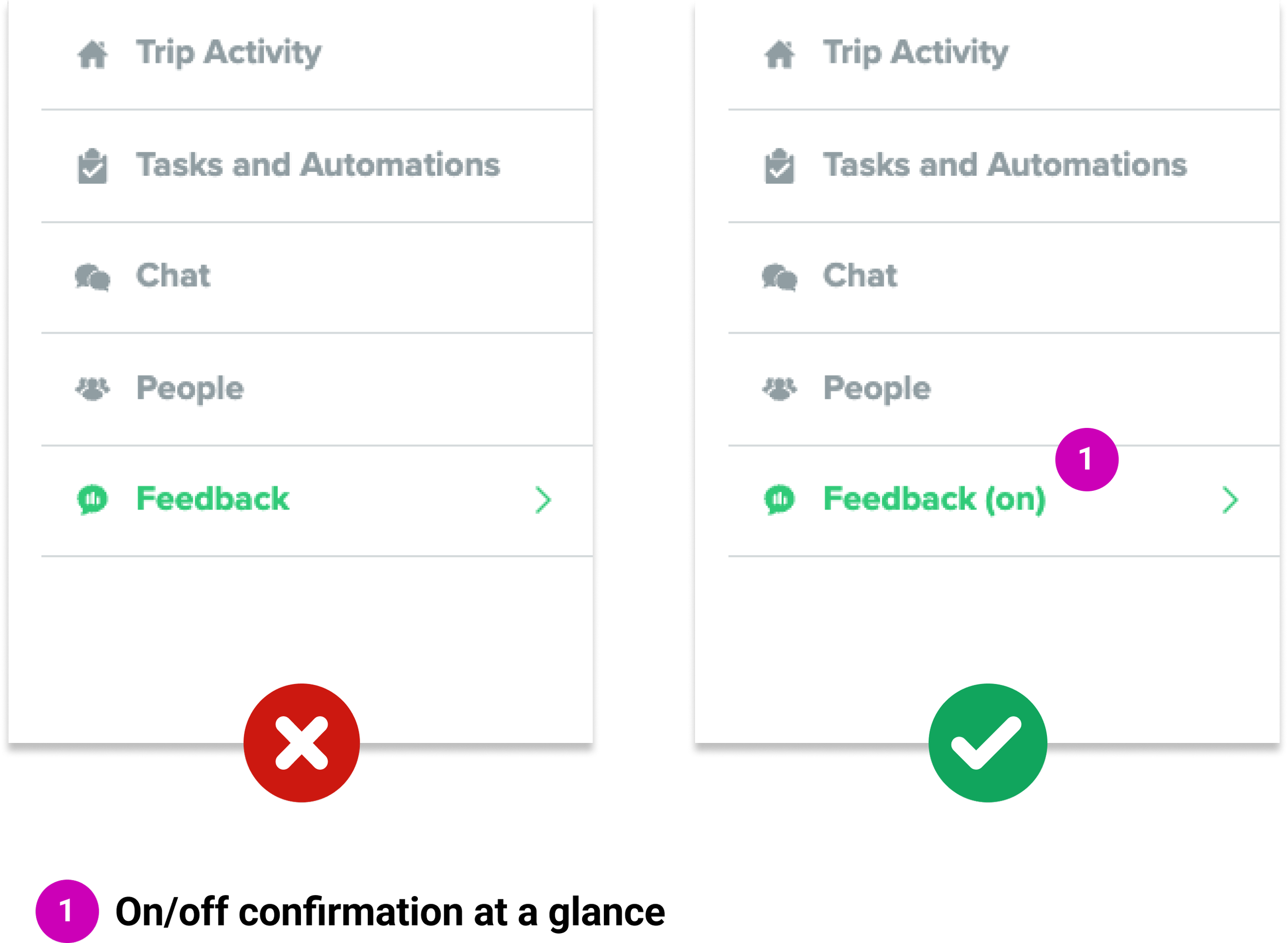 Adding on/off confirmation created heaps of system clarity with minimal increase in visual noise.